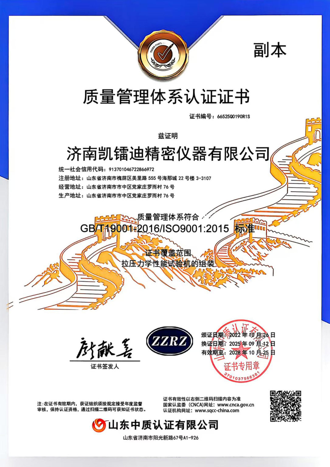 質(zhì)量管理體系認(rèn)證證書